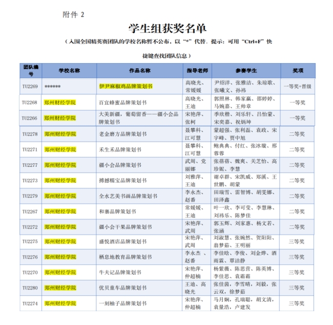 商学院高度重视该项竞赛的组织工作,学院领导大力支持,各位指导教师倾其所学、悉心指导。在品牌策划竞赛总决赛中,商学院“伊尹麻椒鸡品牌策划工作室”参赛成员尹绍洋、张雅洁、朱琼歌、张曦文、孙祎,在高晓光老师和常媛媛老师的指导下,沉着冷静、全力以赴、认真参赛,取得优异成绩并获得晋级全国精英赛资格,充分展示商学院学生扎实的专业素养与竞赛精神。