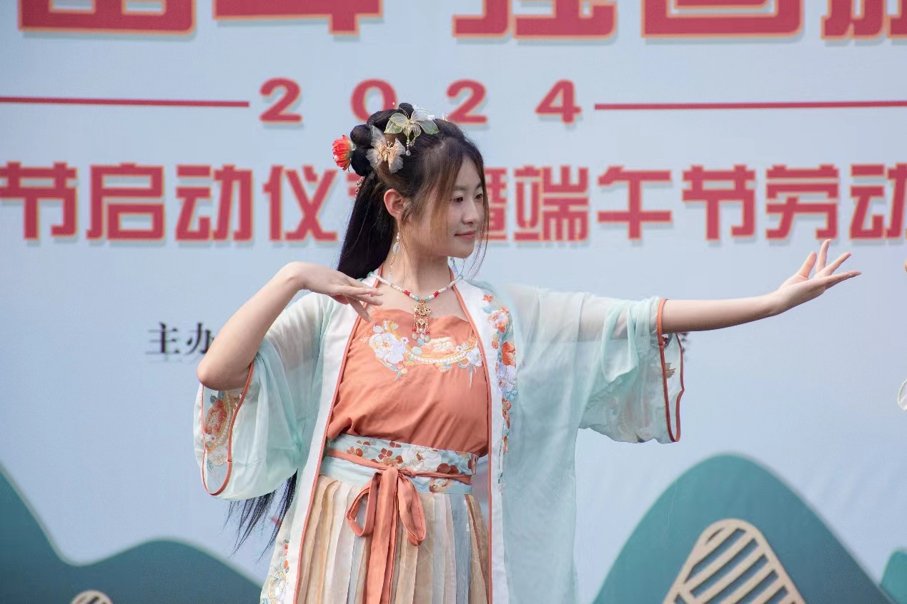 活动伊始,学生代表唐嘉欣发言。她表示,作为国家未来的建设者,传承优秀传统文化,尊重劳动、热爱劳动是青年不可推卸的责任,青年学生应以本次端午节劳动教育实践和传统文化节为契机,将中华优秀传统文化融入校园,在新的历史起点上进一步夯实文化自信之基,肩负起新的文化使命。