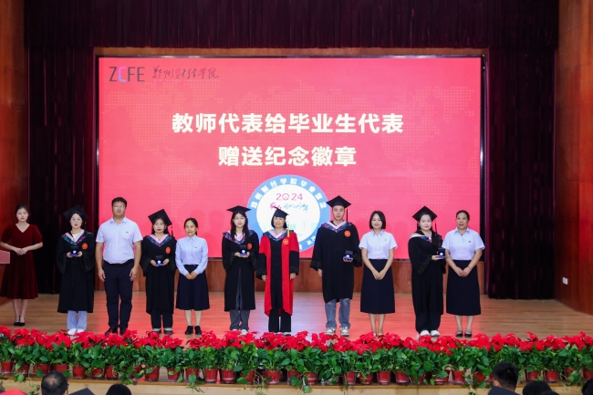 教师代表向毕业生代表赠予纪念徽章