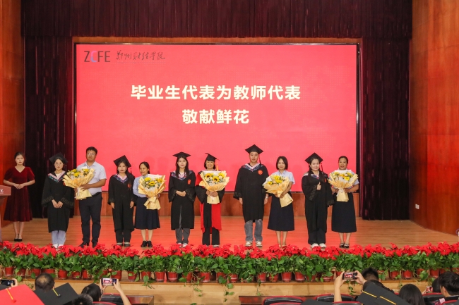 毕业生代表向教师代表献花