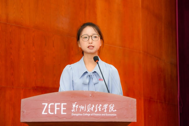 在校生代表管理学院2021级酒店管理本科2班李家垚同学发言。她向全体毕业生送上真挚的祝福,并代表所有在校生祝学长学姐们迎青春梦想于满怀,用最骄傲的姿态、最自信的笑容走出校门,奋勇向前,披荆斩棘,在推进强国建设、民族复兴伟业中展现青春作为、贡献青春力量,奋力书写为中国式现代化挺膺担当的青春篇章。