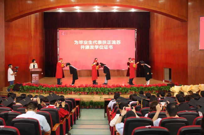 校领导为毕业生代表扶正流苏