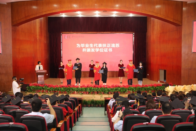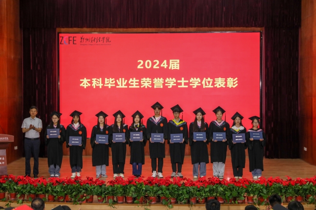 在颁奖环节中,党委副书记董学力为荣誉学士学位代表颁发荣誉学士学位证书;副校长卢文邦为优秀毕业生代表颁发荣誉证书,并向他们表示热烈的祝贺。