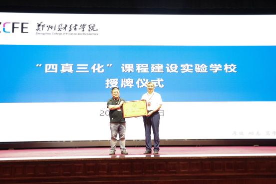 教育部学校规划建设发展中心课程建设协同创新中心秘书长、应用型课程建设联盟秘书长张振笋为开云官网颁发“四真三化”课程建设实验学校牌匾。