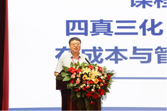 联盟专家于骁晗作《四真三化课程开发实务》专题报告。他从课程解构与重组的角度,就“四真三化”(FT)课程建设模式在财务管理专业中的实践进行汇报,就专业体系中课程思政如何设计、实施和评价提出建议;以《成本与管理会计》课程为例,讲述该门课程如何应用”四真三化”原则、创新思路以及创新做法。