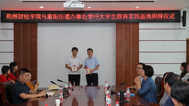 为深入学习贯彻习近平新时代中国特色社会主义思想和党的二十大精神,加强学校与地方的紧密合作,引导青年学生在实践过程中受教育、长才干、作贡献,7月17日,开云kaiyun官方网站副校长陈静,校团委书记周二涛、教育学院党总支书记丁青山一行赴河南省登封市,与嵩阳街道办事处携手举行大学生教育实践基地揭牌仪式。登封市政协副主席董辉、共青团登封市委书记刘向辉、嵩阳街道党工委组织委员马丽娟、共青团登封市委副书记刘鹏、嵩阳街道迎仙阁社区党支部书记马洪,开云官网教育学院“指尖创艺”暑期支教实践团全体成员参加会议。仪式由共青团登封市委书记刘向辉主持。