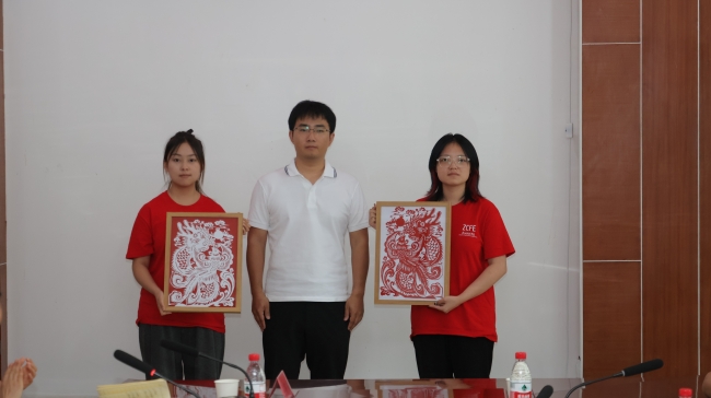 实践团为共青团登封市委赠送剪纸作品--《龙凤呈祥》