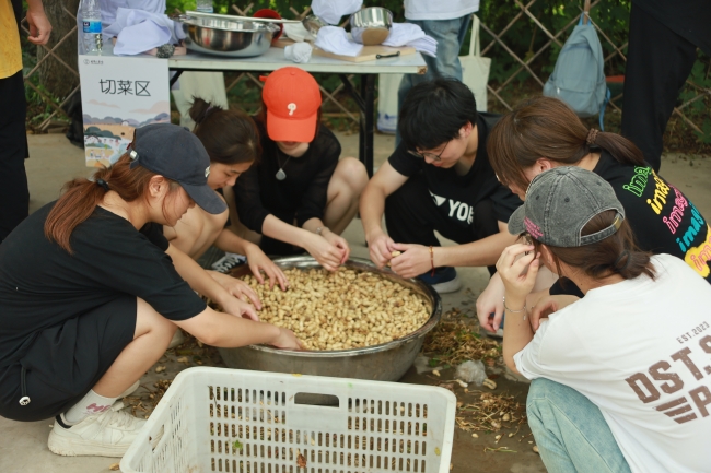 围绕“中国农耕文化和农事活动体验”主题,开云官网学子先后参观了瓜果种植区、有机蔬菜温室及冷棚、玉米花生农田基地,认真聆听指导老师关于农作物种子选取、生长环境、病虫害预防、收割技巧等方面的讲解。并在老师指导下,分组有序开展采摘瓜果、拔花生、收玉米等一系列农田活动。