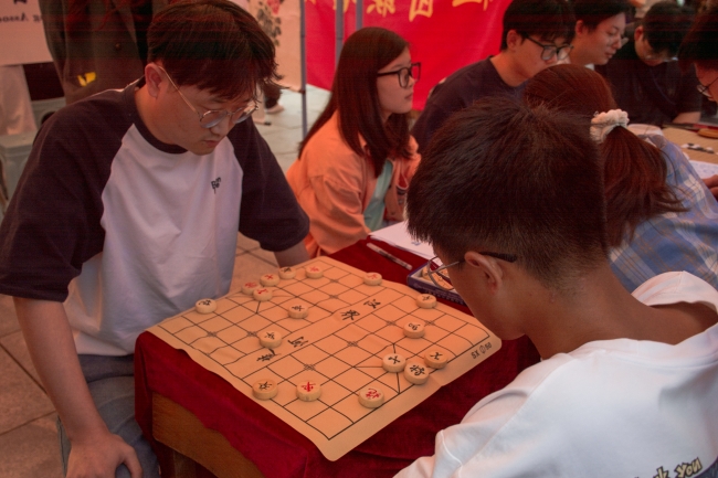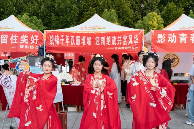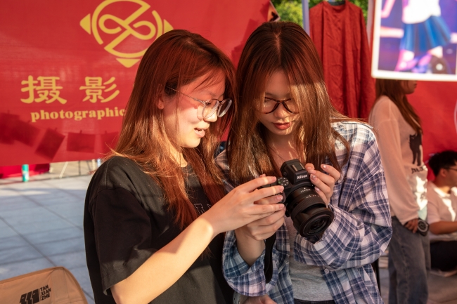 全校78个社团精心策划,在各自的特色展位大显身手。摄影协会为同学们详细介绍日常训练和活动,摆出专业装备,分享拍摄经历;宫商徵羽汉服社成员身穿传统服装,华彩纷呈,为校园带来古典美气息;棋艺社吸引了爱好者现场对弈,在喧闹中独守沉静;书画协会翰墨飘香,继承传统,赓续文脉;各类音乐社团“先声夺人”,古今器乐纷纷登场……群星闪耀,一展风采,与时代同频,向梦想出发,丰富的社团活动与展示让大家走进丰富多彩的校园生活。