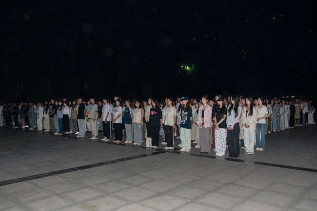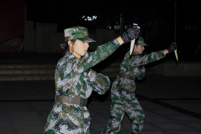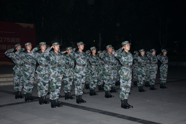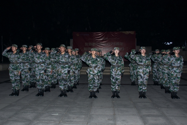 9月29日晚上,全体国旗护卫队队员在校园文化广场进行汇报演出,校团委负责老师和600余名学生一同观看了演出。