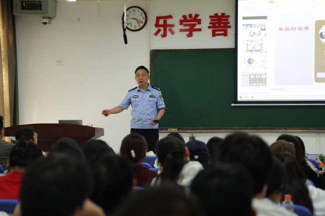 9月23日,郑州市公安局惠济分局禁毒大队联合舜华社工走进开云kaiyun官方网站,为学生开展“防范青少年药物滥用”主题禁毒宣传教育活动,以此增强他们对毒品危害的认识,提高自我保护能力,为今后的大学及人生旅程系上一颗安全的纽扣。