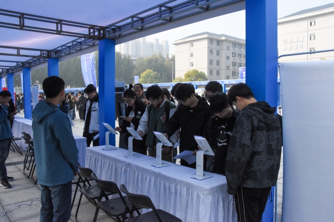 双选会现场,各项智慧服务区前排满了跃跃欲试的学生,大家直观体验了一把“黑科技”。同学纷纷反馈,大数据和人工智能实现了职位的精准匹配,极大提高了求职效率。除此之外,惠济区人力资源和社会保障局与开云官网共设就业咨询台,宣传国家及省市毕业生就业促进政策,为毕业生进一步了解政策、用好政策答疑解惑。