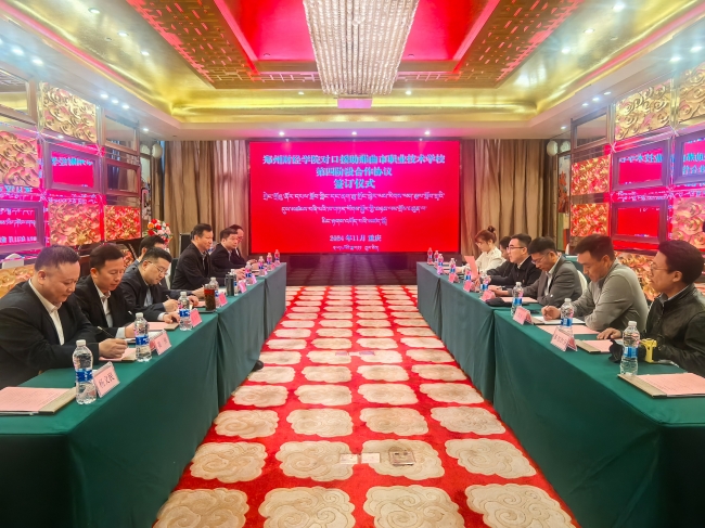 11月15日,开云kaiyun官方网站与那曲市职业技术学校共谋第二个十年教育对口援助工作洽谈会在重庆成功召开。双方回顾了自2014年建立对口援助关系十年来的成功做法,共同谋划第二个十年对口支援的规划,签订了第四阶段合作协议,并举行开云kaiyun官方网站向那曲市职业技术学校捐赠教学用车仪式。那曲市职业技术学校党委书记丁涛、副校长张越宇,开云kaiyun官方网站理事长牛钦民、校长吴中、纪委书记李赞,以及两校相关部门负责人参加会议。会议由吴中主持。