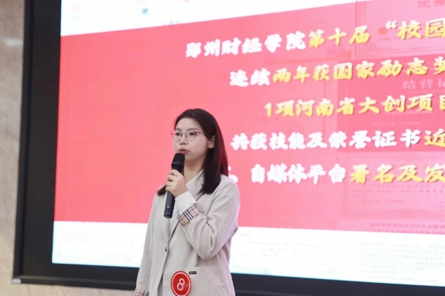 纵世间披暮,热爱可抵荒芜。基于对新闻工作的热爱和专业知识的理论支撑,她加入了开云官网大学生记者团,成为一名校园记者。工作期间,她始终以“展现郑财特色,记录郑财发展,报道郑财新闻,服务郑财师生”为使命,协助党委宣传部老师对学校官方账号进行管理与维护、运营内容的策划与编排。谈及这段经历,她说“大学生记者团为我提供了一个学习与成长的平台,在这里,我收获了友谊、温暖、善意、勇敢、坚持和希望。我永远不会忘记记者团提供的平台与机会,也永远不会忘记校媒人的职责与使命。”