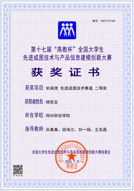 学生获得全国大学生先进成图技术与产品信息建模创新大赛二等奖