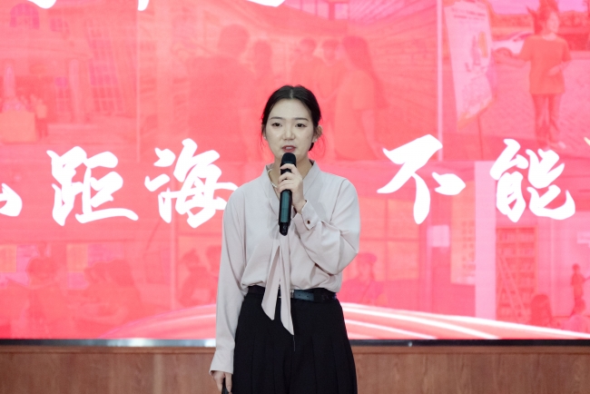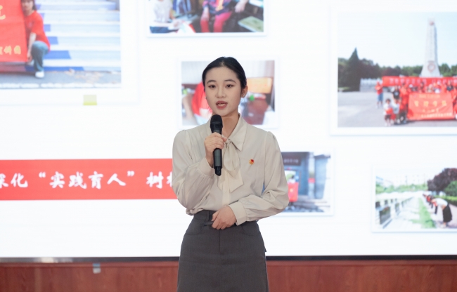 “实践育人工作项目”学生代表韩家赢进行汇报展示
