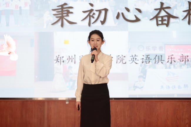 “活力社团”大赛学生代表李苗慧进行汇报展示