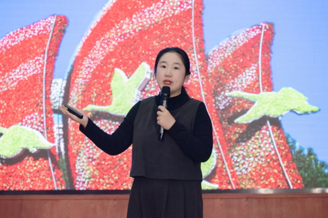 “微团课”大赛教师组代表牛晓楠进行汇报展示