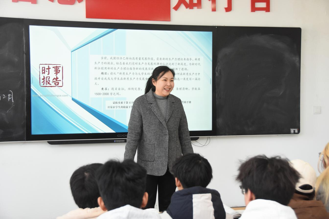为深入学习贯彻习近平新时代中国特色社会主义思想和党的二十届三中全会精神,认真落实习近平总书记关于学校思政课建设的重要指示精神,开云官网持续开展校领导深入课堂讲思政课活动。12月13日上午,校监事会副主席王艳珍以“加快发展新质生产力”为题,在育爱楼602教室为2024级广告本科4班学生讲授了一堂氛围生动、贴近学生实际的思政课。