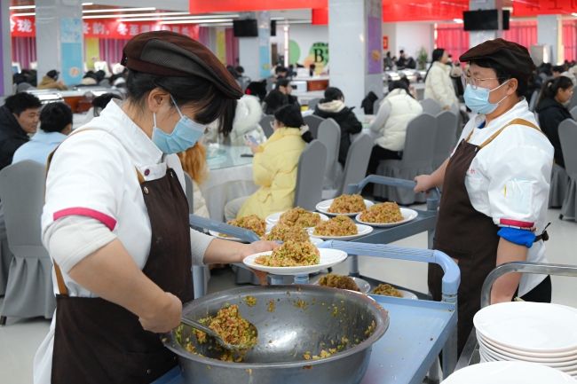 餐厅工作人员馅料装盘