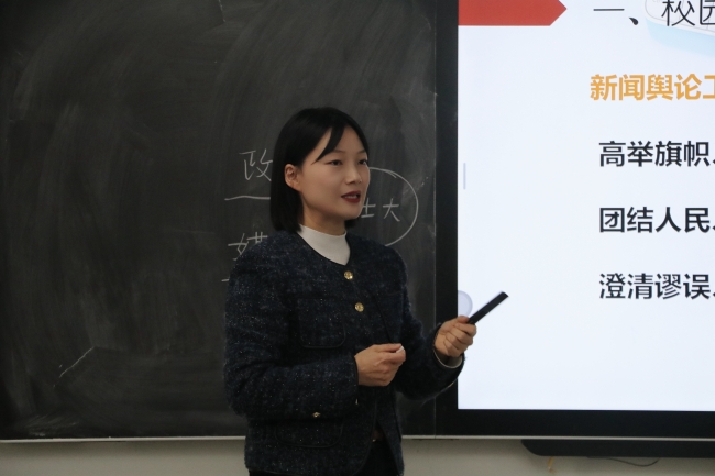 12月17日下午,校党委宣传部副部长李晓培老师为记者团成员作新闻理论基础及人物通讯采写技能培训。李晓培主要是从“校园学生记者的职责”“新闻写作之文本”“通讯的采写方法”三个方面进行展开培训。她强调身为记者团的一员“从了解校园到做好校园官方媒体”要牢记工作职责,明确自己的工作方向;作为学生记者要有高度的新闻敏感度,培养自己的“新闻眼”和“新闻鼻”,善于去发现生活中的新闻。