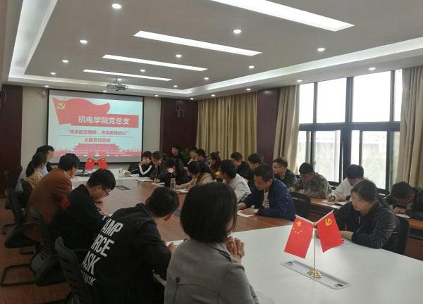 为深入贯彻学习党的十九大精神,提升广大党员党性修养,筑牢理想信念,4月23日,机电与汽车工程学院党总支在A608开展了“传承延安精神、不忘教育初心”主题党日活动。活动由党总支书记王水萍主持。