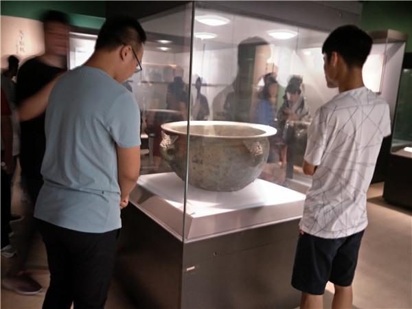 首站,同学们到达河南博物院。在博物院展厅,听着讲解员的讲解,同学们仿佛置身在了五千年的历史长河中,感受到了中华民族灿烂文化的博大精深。博物院里的每一件文物都是历史的缩影,是中华文明门庭里藏匿着的厚实灵魂。