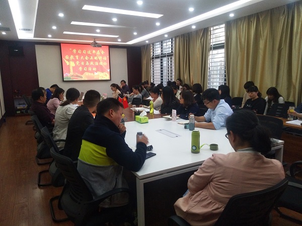 最后,冀延卿强调,学院上下要深刻学习领会习近平总书记的重要讲话精神,把习近平总书记的讲话精神贯穿于教学课堂、科研工作、教育管理等各项工作中,严格要求自己,不忘初心、牢记使命,勇担学校发展的重任。