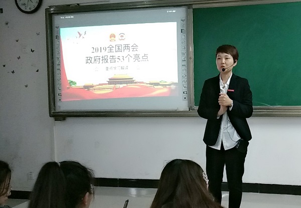 王艳艳老师在第三讲中通过分析两会的热点话题,帮助学生们了解两会的基本概念及相关知识。并围绕涉及教育尤其是大学生创业扶持以及就业等方面的长远利好展开了热列讨论。