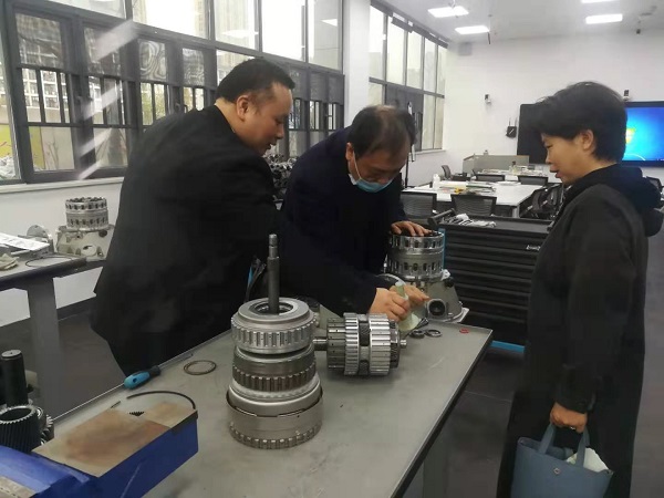 与高校相关人员进行交流 3月21日上午,武汉城市职业学院汽车技术学院实验室主任对该院专业建设和发展做了介绍。随后,学院一行参观了该校汽车实验室,在建筑风格、空间规划、实验室分区、实验项目、虚拟仿真实验室建设、大师工作室建设等方面收获颇丰,对学院新建实验室规划和建设具有很好的借鉴作用。