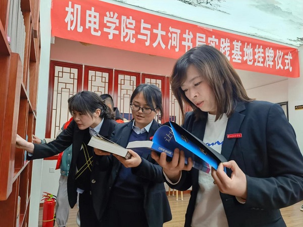 读书使人明智,读书使人高尚,为营造“勤读书、善读书、读好书”的良好文化氛围,搭建“爱好阅读、快乐阅读”的分享平台,3月22日,机电与汽车工程学院联合河南日报报业集团大河书局在郑品书舍举办大学生校外实践基地挂牌仪式。出席本次活动的有河南日报报业集团大河书局党支部书记、董事长李建峰,机电与汽车工程学院党总支书记孟倩倩、副书记刘玲玲、团总支书记王涵和来自郑品书舍、机电学院的志愿者。