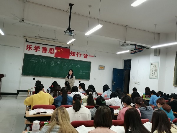 辅导员开展主题班会 随后,系列活动以主题班会、专题讲座等形式有序开展。3月22日至26日,学院组织学生进行“郑财2021春季传染病防治知识线上答题”;3月23日,组织学生在图书馆报告厅参加惠济区疾病预防控制中心慢病科科长冯春明的讲座活动;3月22日至26日,各班辅导员围绕活动主题,根据班级实际情况开展多种形式的班会活动。各班通过播放视频、观看图片以及分析案例等方式,向同学们介绍了防治肺结核等传染病的相关知识。