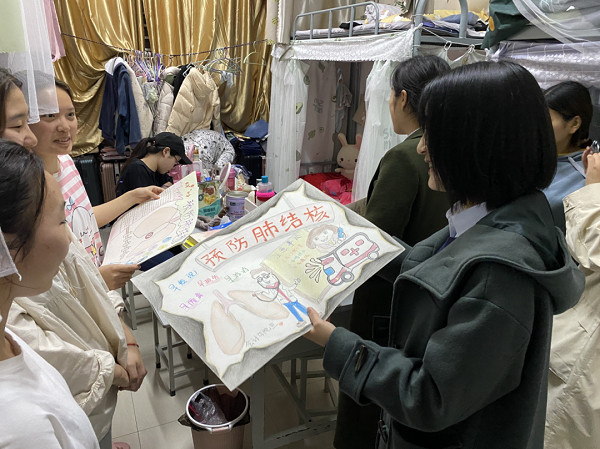 结核病防治宿舍宣传活动现场 肺结核作为一种易于传染的呼吸道疾病,在我国法定传染病中发病及其致死率位列第二。为了提高学生们的防范意识,会计学院辅导员老师围绕“防治结核病”讲解了什么是结核病、结核病的危害及结核病的防治措施。同学们认真聆听,牢记于心。此外,会计学院还以各种方式在宿舍深入宣传,如:张贴手抄报,使更多的学生关注肺结核、认识肺结核,更重要的是知道如何防治肺结核。 此次宣讲活动的开展,使世界结核病防治日更进一步地走入同学们的生活中,了解到了更多结核病的防治知识,提高了学生防病的能力和水平,同时也增强了学生对宿舍卫生的重视,为学校肺结核防控工作助力。 |