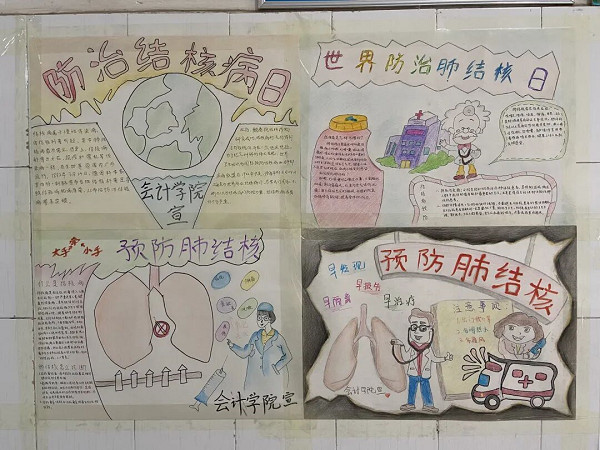 世界防治结核病日手抄报 预防校园肺结核病传播最主要的措施是及时发现和治好传染性的肺结核病人。会计学院学生会积极配合学院工作,绘制手抄报,认真宣传,真正落实“防控结核,人人有责”。