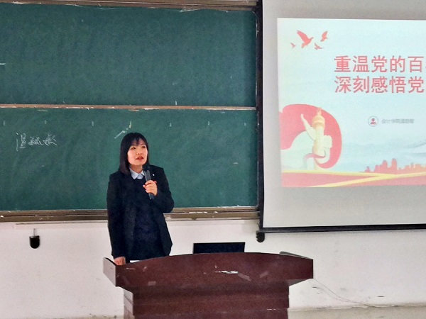 入党积极分子党课培训现场 温毓敏从党的不懈奋斗史、理论探索史、自身建设史、艰辛创业史、践行初心使命五个方面展开论述,结合会计专业在新时代的变革与发展,对培训班的入党积极分子提出了立德、修身、勇于开拓三点希望。她以丰富的阅历、生动的案例及深入浅出的语言,为培训班学员上了一堂深刻、生动、精彩的专题党课,现场不时传来热烈的掌声。