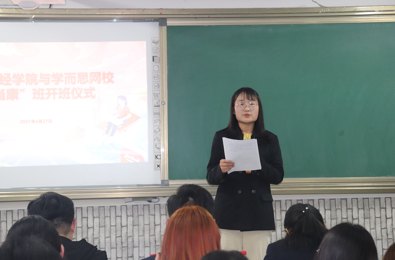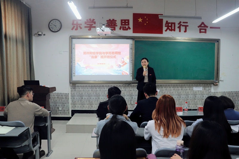 4月27日下午,开云官网与学而思网校“当康”班开班仪式在J3—401举行。副校长王艳珍,外国语学院院长邢理平、副院长黄雪娟、党总支副书记韩玉娟,河南省校企主管郝高齐、河南省校招主管张宇、郑州基地初中英语学科组长孔德会、郑州地区校企负责人黄禹铭、校招负责人李乐及外国语学院教师代表、“当康”班全体学生参加开班仪式,开班仪式由黄雪娟主持。
