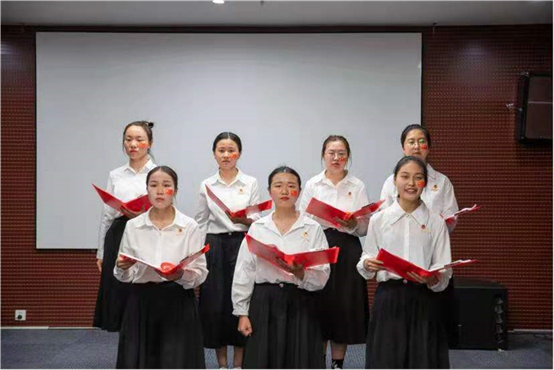 第四组带来的《党的赞歌》为我们讲述了中国共产党一代又一代的人顽强拼搏不懈奋斗的光辉历程,让在座的观众通过激昂的语调和真挚的情感深切体会到革命烈士顽强奋斗的先进模范精神。