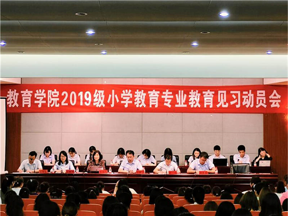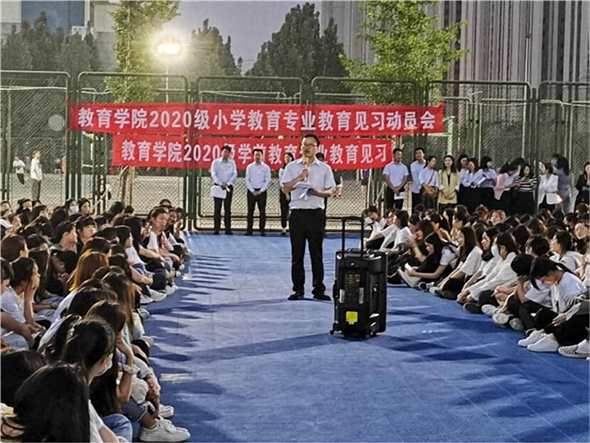 5月13日晚,教育学院在A楼第二学术报告厅召开2019级小学教育专业教育见习动员会,5月14日晚在新排球场召开了2020级小学教育专业、2020级学前教育专科专业教育见习动员会。院长陈冬花、党总支书记丁青山、副书记曹亮、副院长郑琳娜、团总支书记胡亚东、小学教育专业教研室主任李明德、学前教育专业教研室主任陈宇、教育见习带队教师、辅导员及相关专业班级学生参加了动员会。两场动员会分别由李明德、陈宇主持。