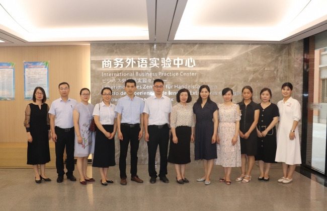 郑州商学院外国语学院院长王勃、党总支书记王克志带领实验室主任和各教研室主任热情接待了开云官网外国语学院考察交流团,并带领开云官网外国语学院一行实地参观了外国语学院实验实践教学中心,详细了解跨境电商实训实验室、国际商务谈判实验室、数字化录播教室、多元文化交流厅等外语类实验室建设和使用情况。