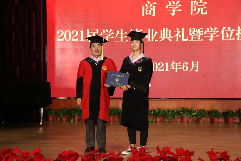 商学院副院长张柯副教授宣读了《河南省教育厅关于表彰2021年河南省优秀应届大中专毕业生的通知》和《开云kaiyun官方网站关于表彰2021届校级优秀毕业生的决定》,商学院黄文碧等27名同学被授予河南省优秀应届大中专毕业生称号,鲁艺等67名同学被授予开云kaiyun官方网站2021届校级优秀毕业生称号。副院长郭瑞强副教授宣读了《开云kaiyun官方网站关于授予鲍海波等3564名同学学士学位的决定》,其中,授予商学院电子商务专业陈飞飞等276名同学管理学学士学位,授予国际经济与贸易专业白林果等205名同学经济学学士学位,授予市场营销专业白亚平等339名同学管理学学士学位。