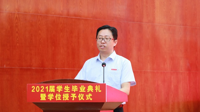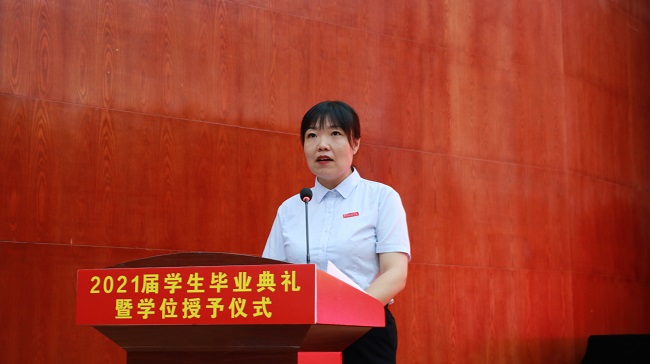 学院党总支书记温毓敏宣读《河南省教育厅关于表彰2021年河南省优秀应届大中专毕业生的决定》和《开云kaiyun官方网站关于表彰2021年优秀应届毕业生的决定》。