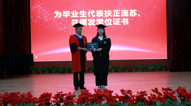 学院院长张学功教授以及导师代表依次为毕业学子扶正流苏、颁发学位证书。