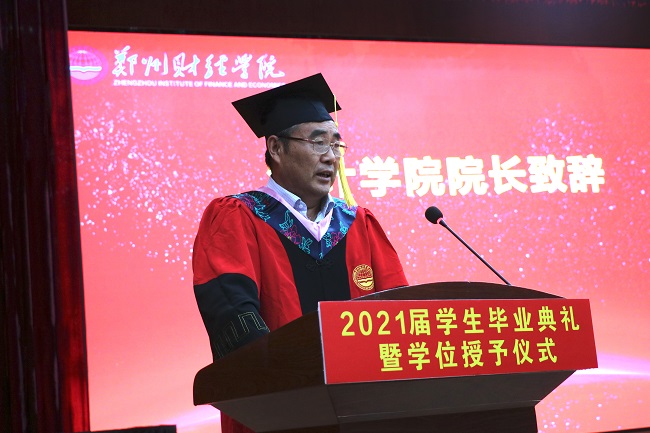 最后,会计学院院长张学功致辞。他向2021届毕业生顺利毕业表示热烈的祝贺,向辛勤培育学生的家长、老师表示诚挚的感谢。张学功对毕业生提出了殷切希望:第一,希望同学们学会感恩,回报社会。感恩父母给予生命、感恩老师培养专业能力。走向社会后,把人生的“盈利点”聚焦在“与国家共荣”上,经营好人生的“资产负债表”;第二,希望同学们诚信为本,坚守底线。诚信立身、诚信处世,做讲诚信的人,成为人生的最大赢家。走上工作岗位后,坚守职业底线,守好做人做事的人生底线;第三,希望同学们终身学习,与时俱进。多学习、勤学习,养成终身学习的良好习惯,为社会、为单位、为家庭多做贡献,不忘初心、砥砺前行。