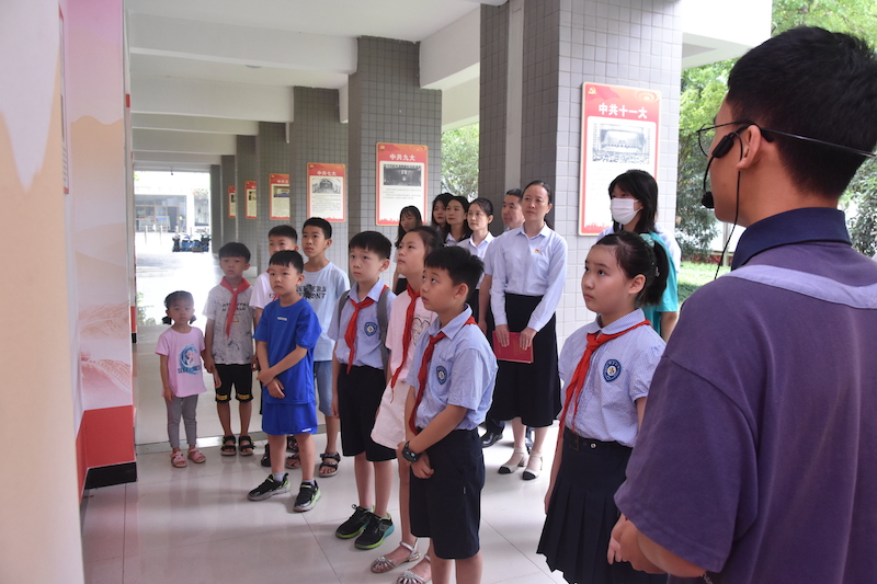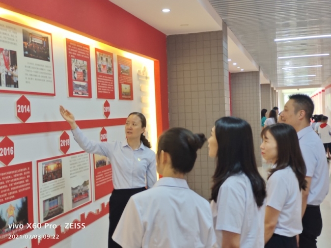 7月3日上午,机关二党总支组织了一场特殊的红色学习教育活动,机关二总支书记胡瑞芝、组织部副部长廖兰芳带领党员和15名教师子女参观了学校的党史学习教育红色长廊,这次活动不仅使党员们重温了党史,也让教职工子女感受到中国共产党的伟大。