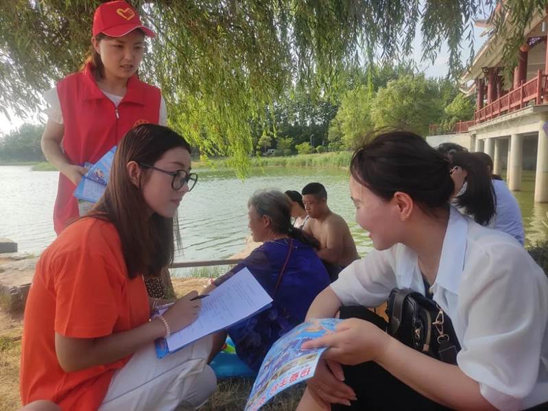 青春心向党,奋进新时代。2021年7月13日,“小绿伞”防溺水服务团在睢县地方海事所举行活动启动仪式。上午,“小绿伞”防溺水服务团成员通过发放防溺水安全手册、悬挂宣传条幅、面对面交流普及防溺水安全知识、问卷调查等方式在天湖城社区商店、文化广场,深入开展防溺水宣传教育工作。下午,服务团走进睢县恒山湖国家湿地公园,通过粘贴防溺水海报、发放防溺水安全知识调查问卷、开展恒山湖国家湿地公园防溺水措施调研等方式,进一步加强防溺水安全教育宣传。