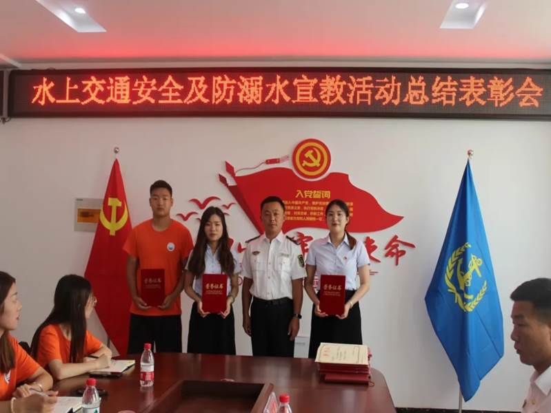 睢县海事所所长闫军为团队和成员们颁奖