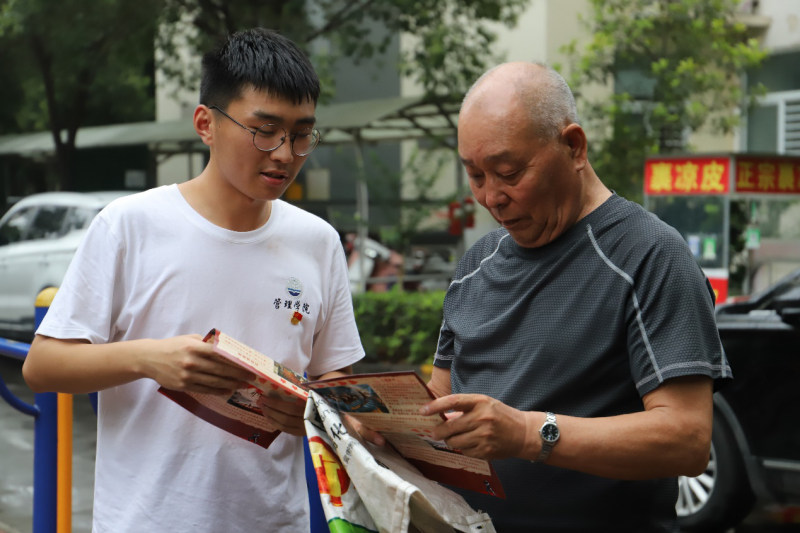 7月12日至18日,宣讲团深入驻马店、周口、郑州、南阳、新乡、中牟等地,奔赴养老院、幼儿园、党员家庭、村庄街道社区及红色教育基地,发放宣传手册和调查问卷,宣传党史知识,帮助人们了解党的发展历程,传播红色精神。