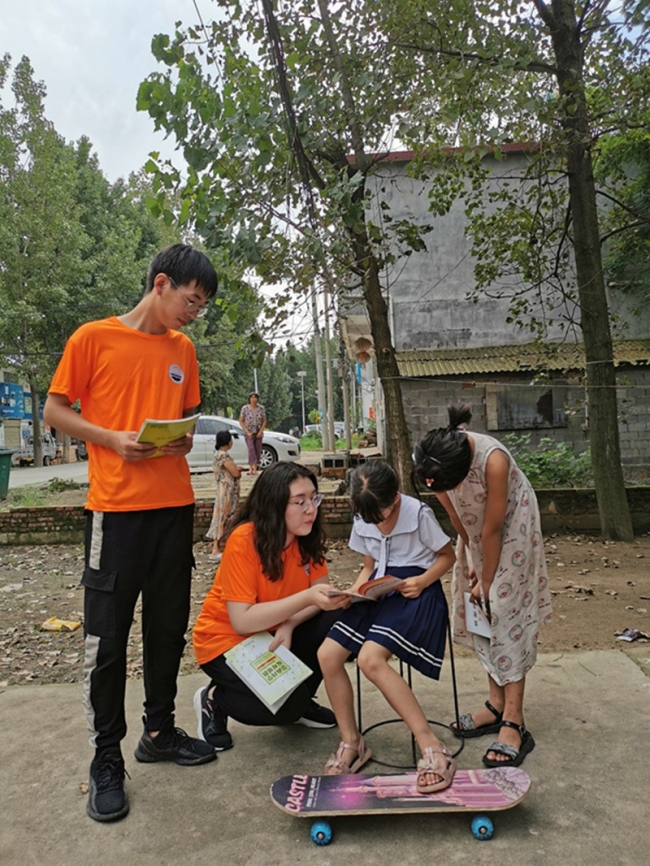 走村串户察实情,崇尚科学反邪教。骄阳似火,空气中充斥着炎热与焦躁,但丝毫阻挡不了实践团队员的热情。队员们身穿“永远跟党走 奋进新时代”的橙黄色T恤,迈着矫健的步伐,行走在田间地头、村头巷尾向村民宣传反邪教知识,还耐心地俯下身来,仔细地向小朋友讲述邪教的危害,告诫小朋友要远离邪教,使得“崇尚科学,反对邪教”的观念更加深入人心。