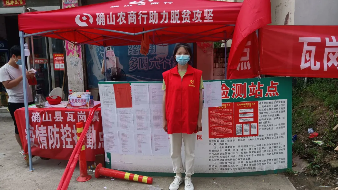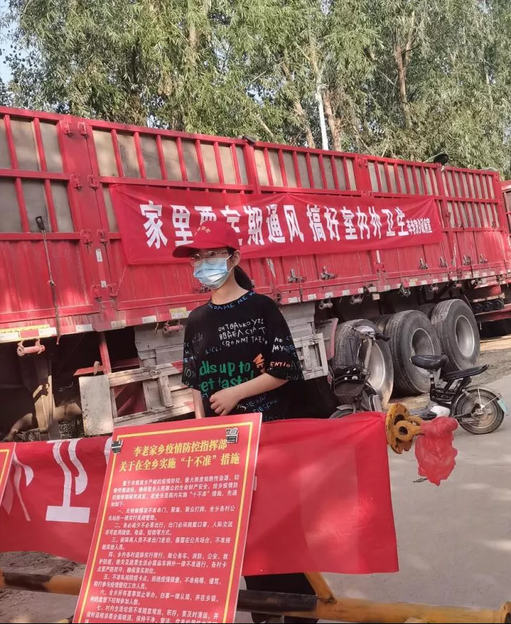 20级会计本4班的薛盈盈同学在驻马店市确山县参加疫情防控志愿服务工作。她说:“疫情来袭的时候,听说村口疫情防控执勤点人手严重不足,我立即就向村委会提出了做志愿者的申请。在执勤卡点,白天天气炎热,夜里蚊虫叮咬,但是想到自己的努力,可以给村庄减少一点风险,就觉得这些困难不算什么了。相信在所有人的共同努力下,我们一定会打赢这场战役。”