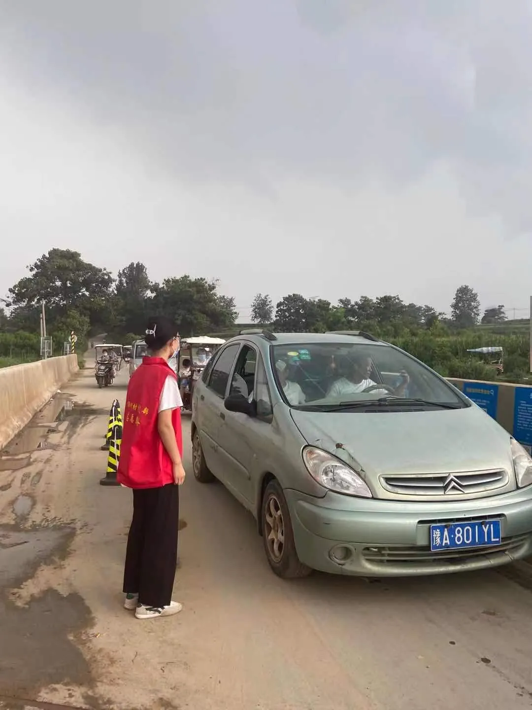 20级会计本2班李淑萍在焦作市武陟县大封镇西岩村参加疫情防控志愿工作。她说:“8月11日,大封镇疫情防控形势严峻,西岩村招募志愿者帮助村干部把守路口、登记来往行人信息。得知消息后,我和姐姐马上报名参加,在大堤上开始了我们的志愿服务工作。”